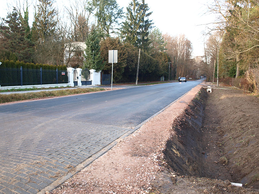 Nie można też zapomnieć o ul. Głównej, która jak sama nazwa wskazuje jest jedną z ważniejszych arterii komunikacyjnych naszego miasta. Tu nowy wygląd i nawierzchnię zyskał odcinek od ul. Błońskiej do ul. Warszawskiej. Jako że chodnik na tym odcinku został wykonany w latach poprzednich, teraz zajęliśmy się jezdnią oraz zjazdami do nieruchomości. W przypadku ul. Błońskiej projektant przewidział odprowadzanie wody z jezdni do rowów otwartych, które mają za zadanie zatrzymać wody opadowe i odprowadzić je do gruntu. Za przebudowę tego odcinka wykonawca otrzymał wynagrodzenie w wysokości 734 511,94 zł.
