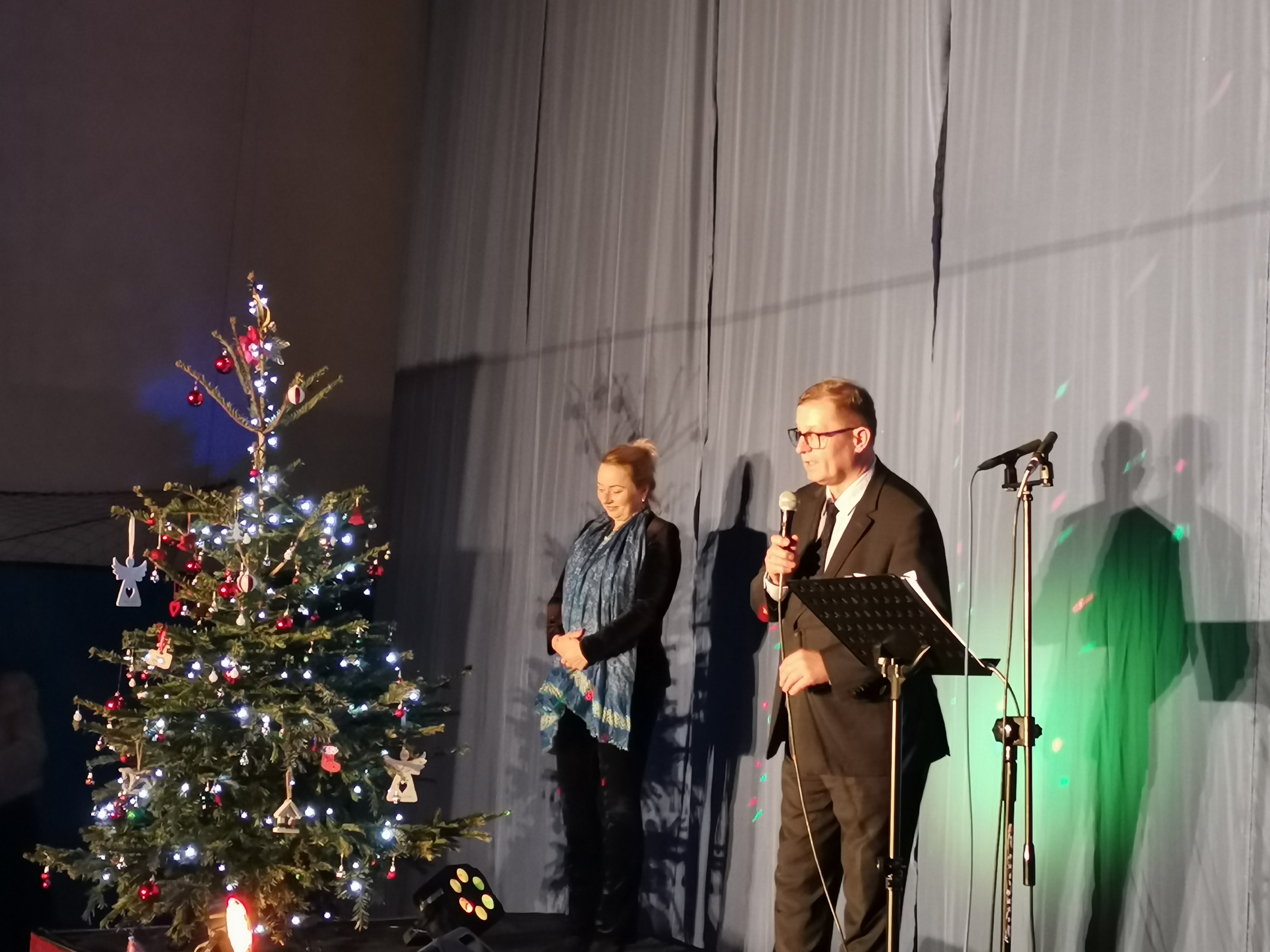 Uroczystość rozpoczęła się serdecznym powitaniem gości przez Magdalenę Eckhoff, Burmistrz Miasta Podkowa Leśna, która wprowadziła wszystkich w świąteczno-noworoczny nastrój. Następnie Michał Gołąb, Przewodniczący Rady Miasta, złożył zgromadzonym ciepłe życzenia, a swój serdeczny przekaz i błogosławieństwo przekazał również Ksiądz Wojciech Osial, Proboszcz Parafii Św. Krzysztofa w Podkowie Leśnej.